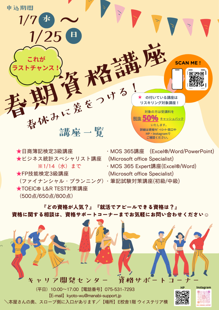 🌸1/25(日)まで🌸春期資格講座 最終募集について