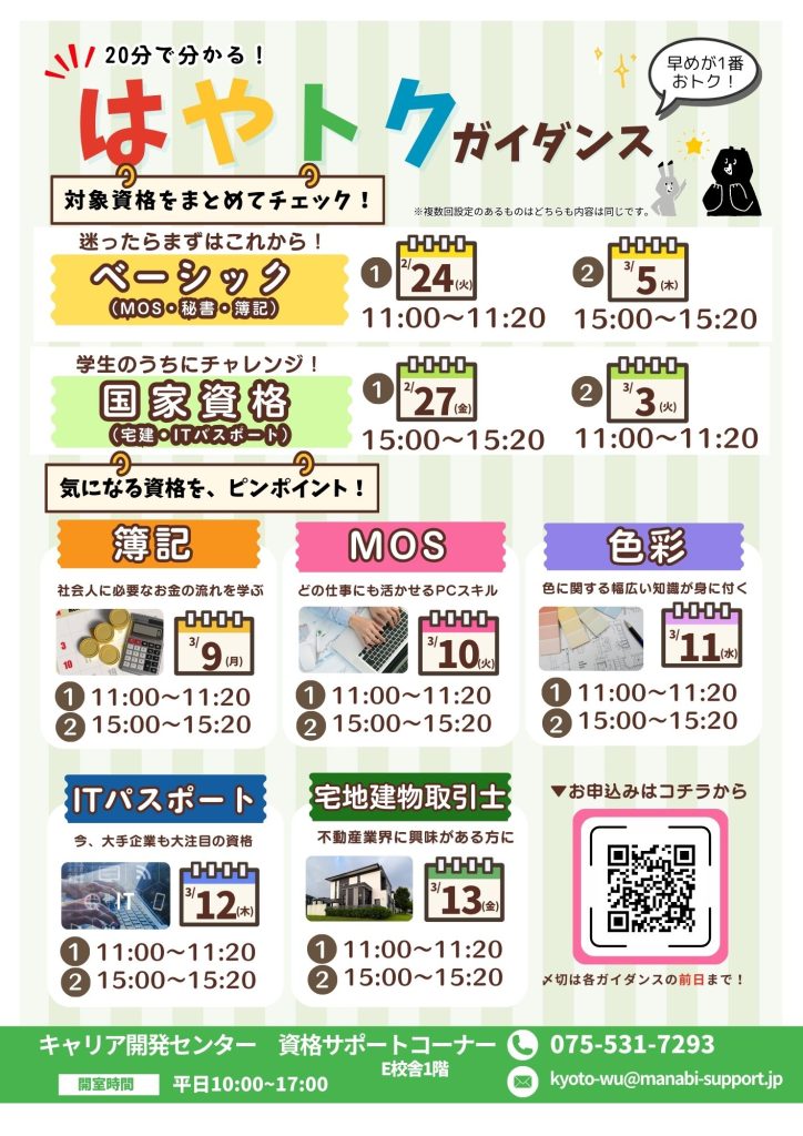 各ガイダンスの日時はチラシからチェックしてください!